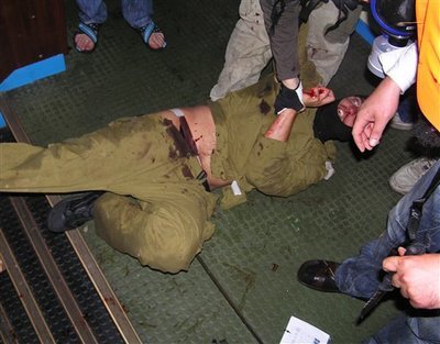 According to Little Green Footballs founder, Charles Johnson, “Most people would consider that knife an important part of the context. There was a huge controversy over whether the activists were armed. Cropping out a knife, in a picture showing a soldier who’s apparently been stabbed, seems like a very odd editorial decision.”