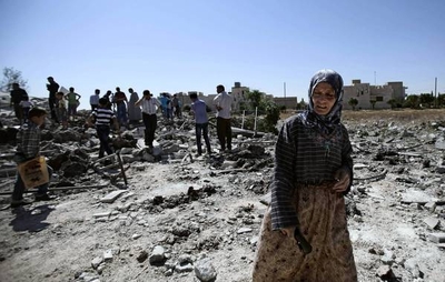 A woman in Azaz, Syria, looks at the rubble of a house destroyed by government shelling in 2012 (Photo: AP) |