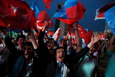 Supporters of the A.K.P. at the party’s headquarters in Ankara, the capital. (Photo: Reuters) |