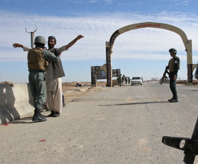 Afghan security police stand guard at checkpoint in southern Afghanistan in February 2015. (Photo: AP) |
