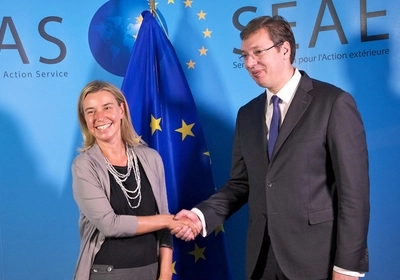 Serbia’s Prime Minister Aleksandar Vucic with EU foreign policy head Federica Mogherini (Photo: Council of the EU) |