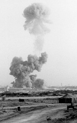 Smoke rises after the attack. (USMC, Wikipedia).