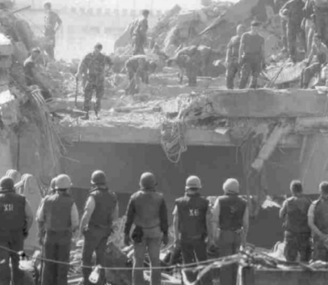 Marine Barracks in Beirut after bombing, October 23, 1983. (Photo: SSgt Randy Gaddo, USMC - DefenseLINK News, U.S. Department of Defense)